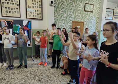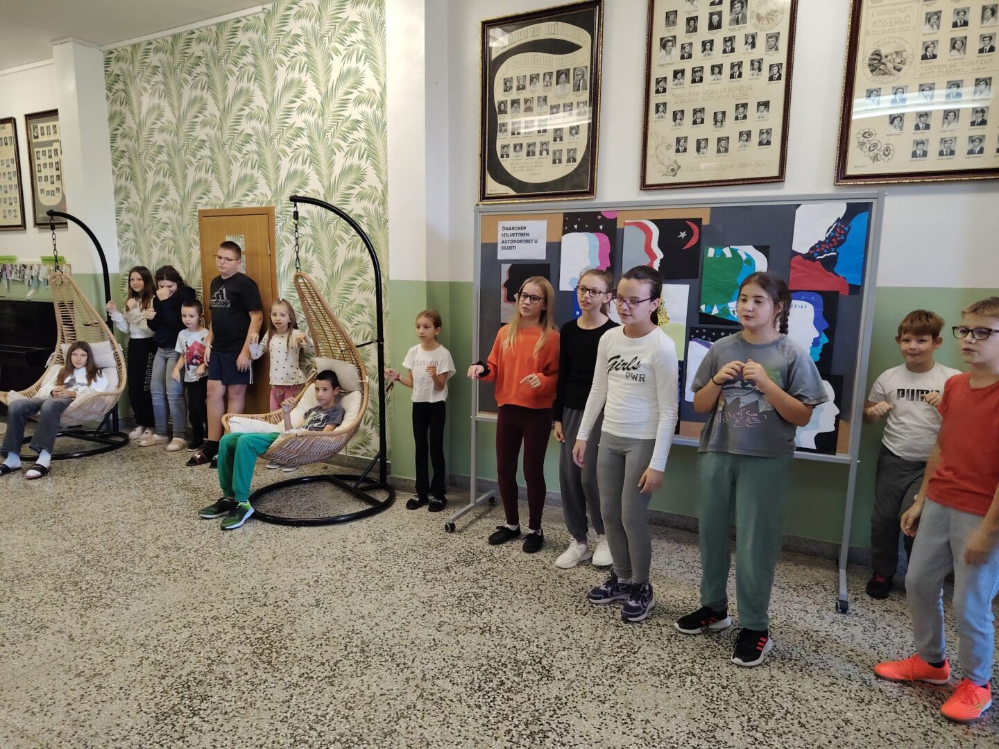 A közös tevékenység során a diákok átismételték a tempó és a dinamika zenei fogalmakat, az első osztályosoknak pedig lehetőségük nyílt kipróbálni magukat karmesterként.