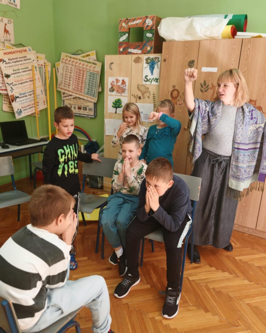 aki a figyelem fejlesztését segítő foglalkozást tartott a gyerekeknek.
