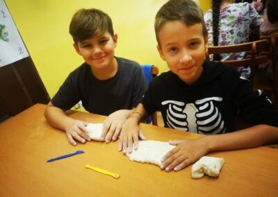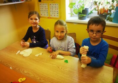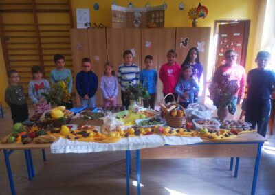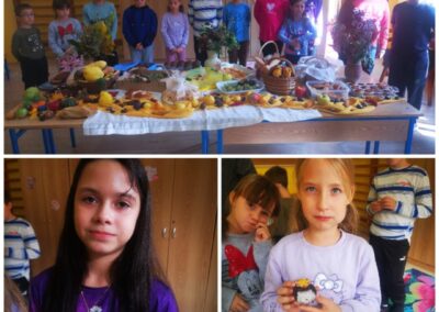 Učenici su s puno mašte izrađivali razne oblike od mase soli i brašna, a donijeli su i jesenske plodove te domaća peciva kojima su ukrasili stolove. Nakon što su sve posvetili i pomolili se, zajednički su zapjevali i počastili se ukusnim zalogajima.