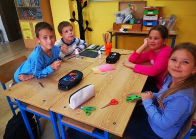 A tanórán a kenyér témájában oldottak meg feladatokat, készítettek egy, “A gabonától a kenyérig” című kiskönyvet, és megnézték a “Király kenyere” című mesét, majd csoportokban, szorgalmas munkával oldották meg a kapcsolódó feladatokat.