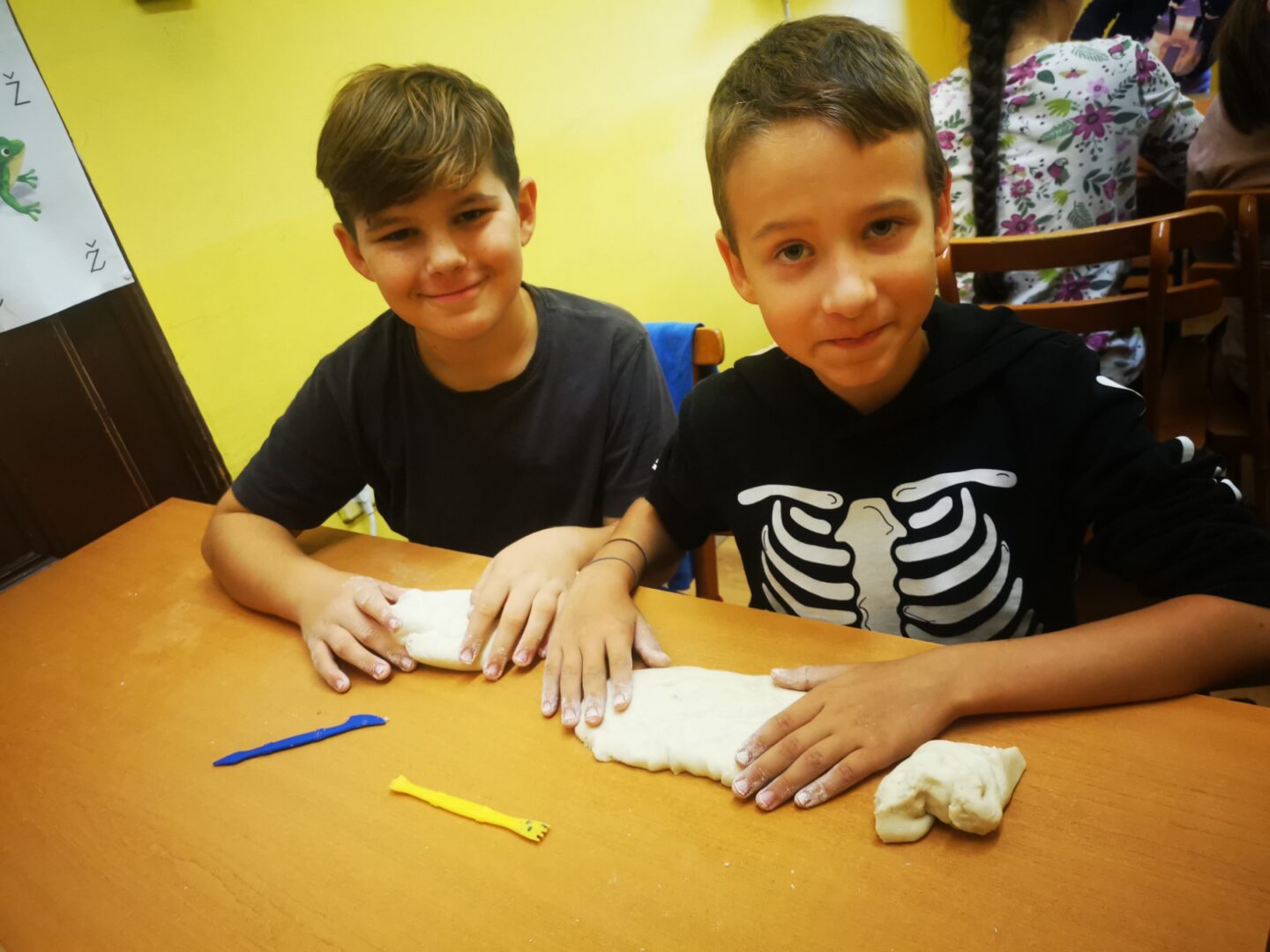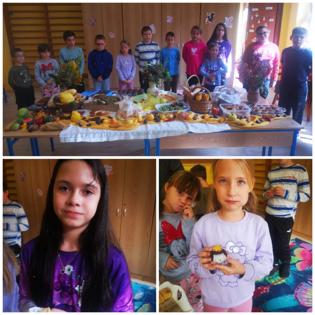 Učenici su s puno mašte izrađivali razne oblike od mase soli i brašna, a donijeli su i jesenske plodove te domaća peciva kojima su ukrasili stolove. Nakon što su sve posvetili i pomolili se, zajednički su zapjevali i počastili se ukusnim zalogajima.