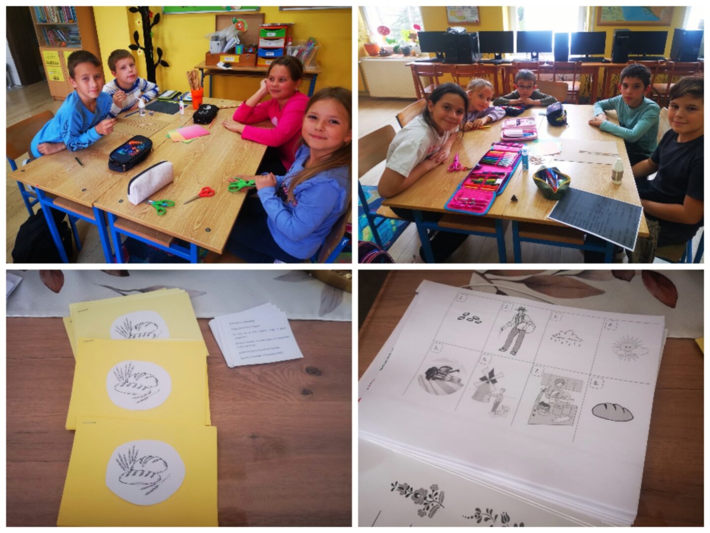 A tanórán a kenyér témájában oldottak meg feladatokat, készítettek egy, “A gabonától a kenyérig” című kiskönyvet, és megnézték a “Király kenyere” című mesét, majd csoportokban, szorgalmas munkával oldották meg a kapcsolódó feladatokat.