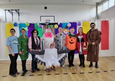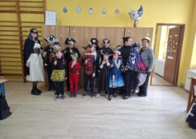 Učenici i učitelji maskirali su se u maštovite likove te zajedno zaplesali i sudjelovali u raznim natjecateljskim igrama. Školski hodnici ispunili su se glazbom, veseljem i šarenim kostimima. Nije nedostajalo ni slatkog okrjepljenja – svi su se zasladili ukusnim krafnama koje je pripremila teta Anuška.