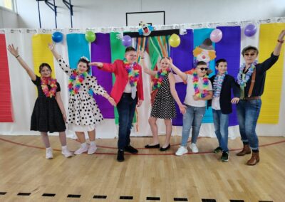 A diákok és tanárok ötletes jelmezekben táncoltak együtt, és különféle versenyjátékokban vettek részt. Az iskola folyosóit zene, öröm és színes jelmezek töltötték meg. Édes frissítőkből sem volt hiány – mindenki élvezte az Annuska néni által készített finom fánkokat.