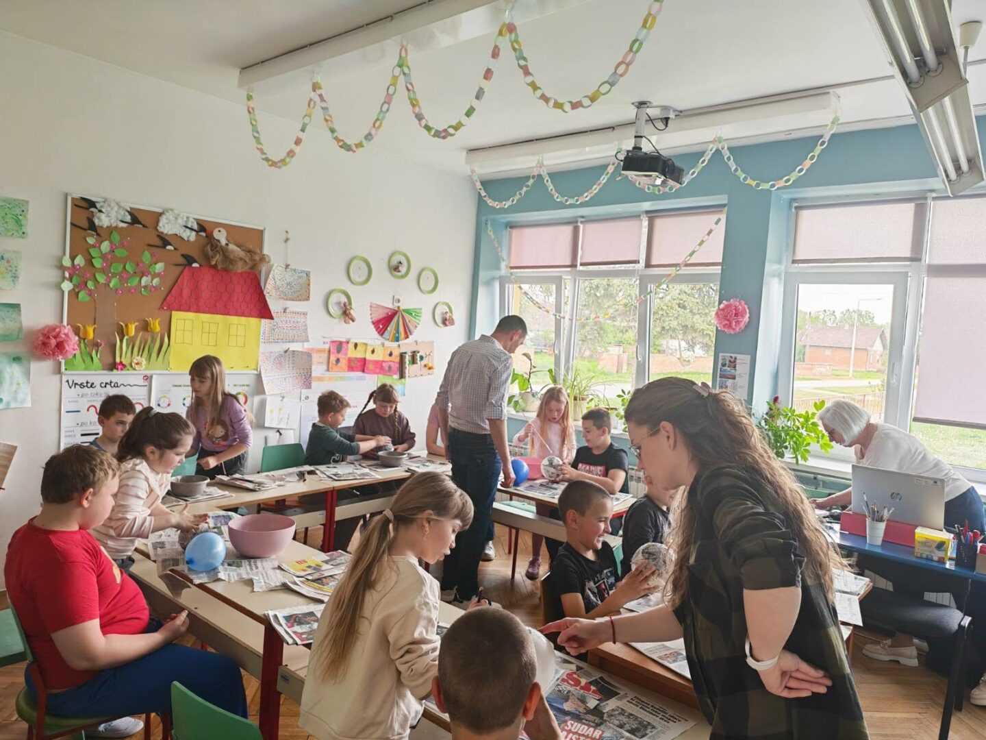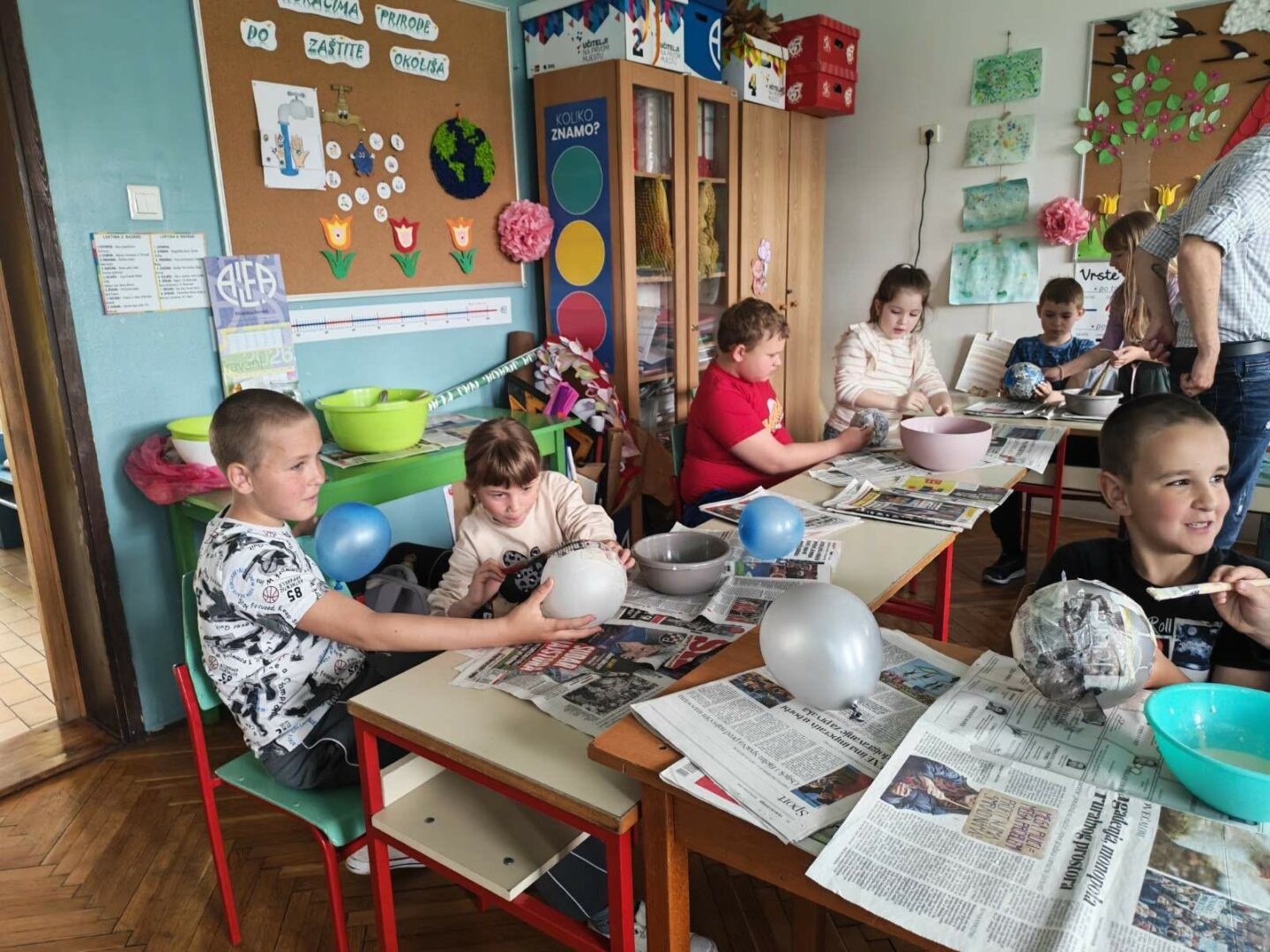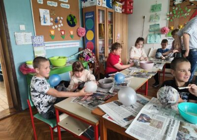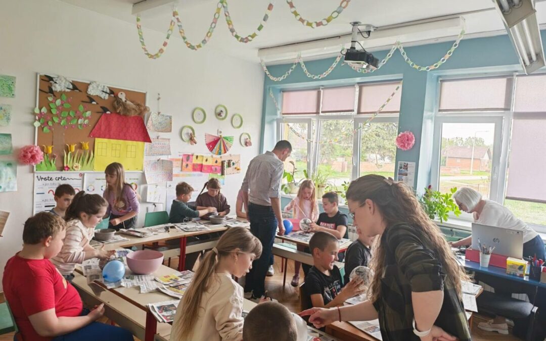 Učenici razredne nastave PŠ Novi Bezdan, u srijedu, 22. travnja, sudjelovali su na zanimljivoj i kreativnoj radionici povodom Dana planeta Zemlje. Učenici su pogledali kratki animirani film, nakon kojega su, kroz razgovor promišljali o tome kako možemo zaštititi naš planet i očuvati prirodu. Učenici su u parovima, uz upute učitelja, izrađivali model Zemlje tehnikom kaširanja. Radionica je bila vrlo zabavna, ali i poučna, jer su učenici kroz praktičan rad učili o važnosti brige za okoliš.