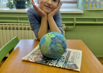Április 22-én, szerdán az újbezdáni iskolánk első osztályos tanulói egy érdekes és kreatív műhelyfoglalkozáson vettek részt a Föld Napja alkalmából. A diákok egy rövid animációs filmet néztek meg, majd megvitatták, hogyan védhetjük meg bolygónkat és hogyan őrizhetjük meg a természetet. Párokban, tanári útmutatással, kasírozási technikát alkalmazva a diákok elkészítették a Föld modelljét. A foglalkozás nagyon szórakoztató és tanulságos is volt, mert a diákok gyakorlati munkán keresztül ismerkedtek meg a környezetvédelem fontosságával.