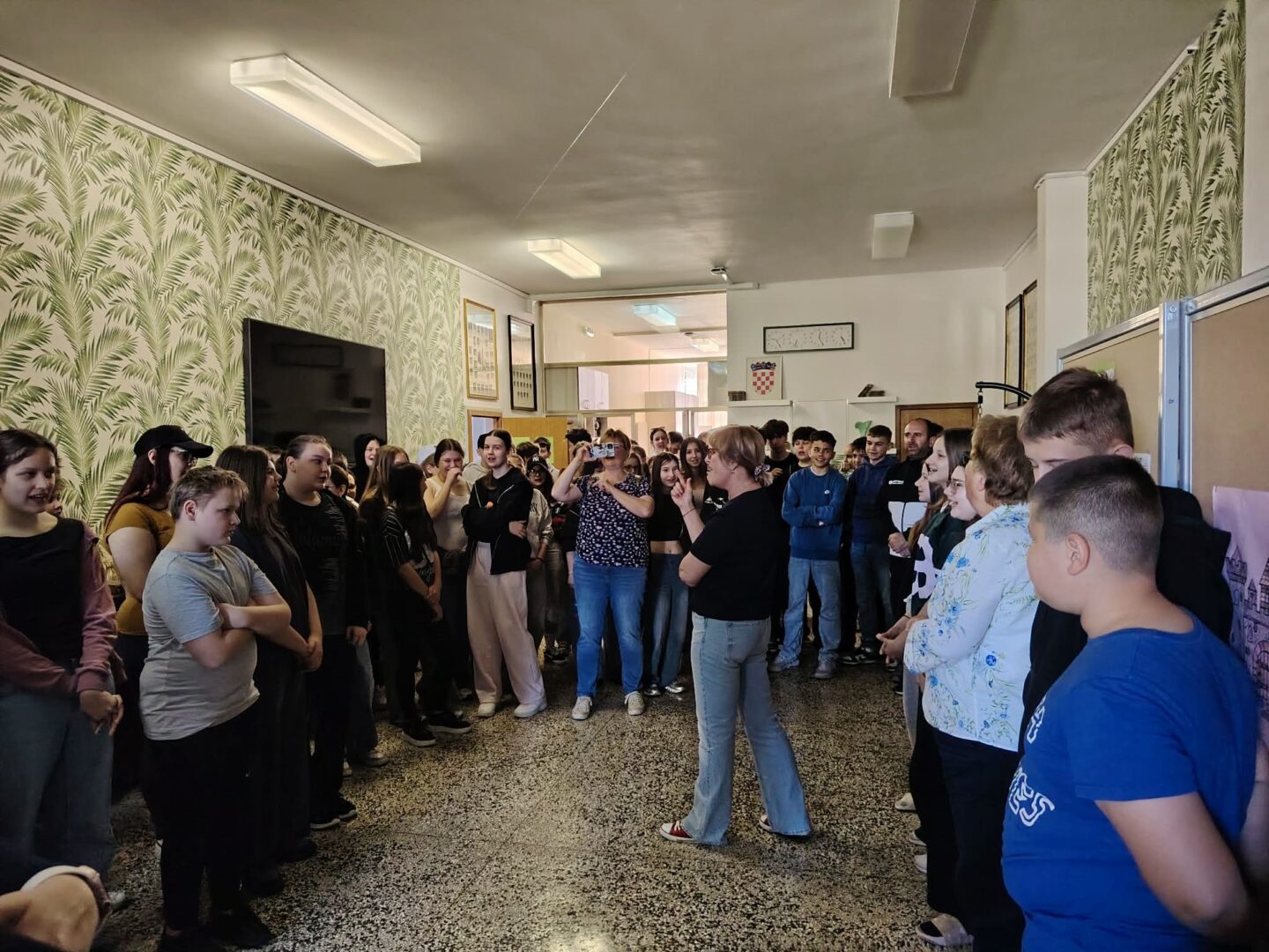 Dana 24. travnja 2026. godine naša je škola imala čast ugostiti učenike sedmih razreda Osnovne škole njemačke nacionalne manjine „Vezér” iz Taksonya. Posjet je organiziran u okviru projekta „Bez granica”, čiji je cilj jačanje zajedništva i suradnje mađarskih škola izvan granica Mađarske.